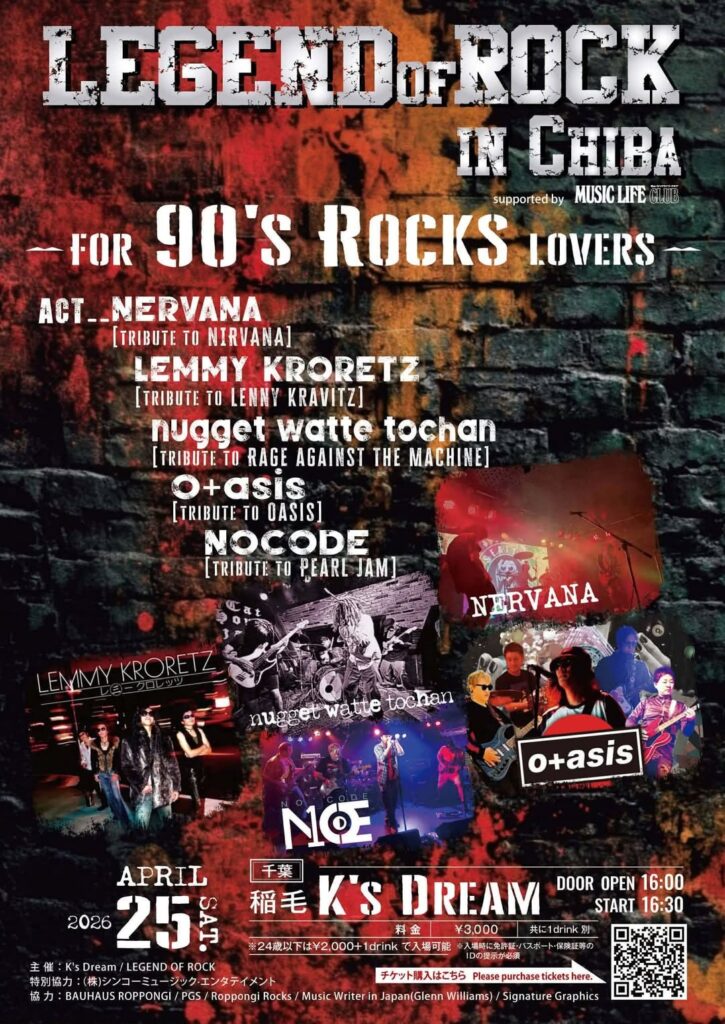 ■2026/4/25(土) 稲毛K’s Dream -レ三ークロレッツ(as Lenny Kravitz)-